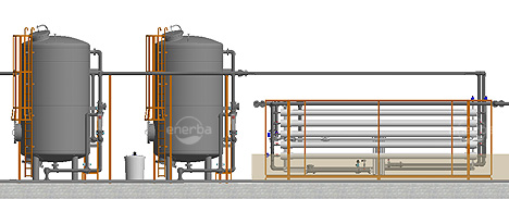 ENERBA-RO BW offers a reverse osmosis water package designed to eliminate other salts and constituents such as bacteria, sugars, proteins, dyestuffs and constituents that have a molecular weight greater than 150-250 Dalton. High pressure pressure pump adjustment ENERBA-RO SW is calculated based on your water salinity and varies from 55 to 65 bar.